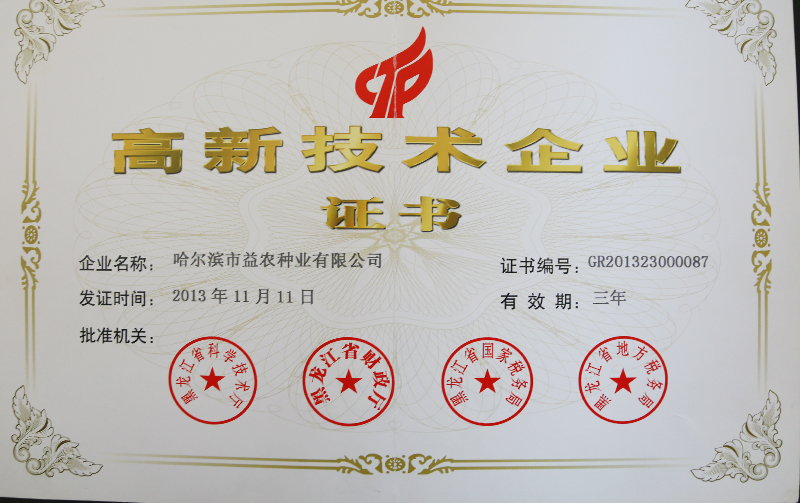 高新技术企业证书
